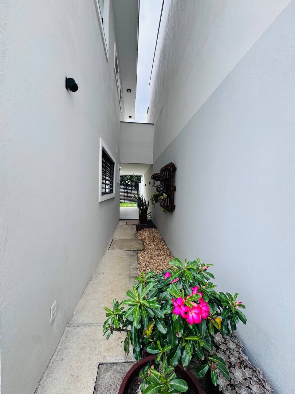 Jardim que traz charme e sensação de bem-estar logo na chegada.