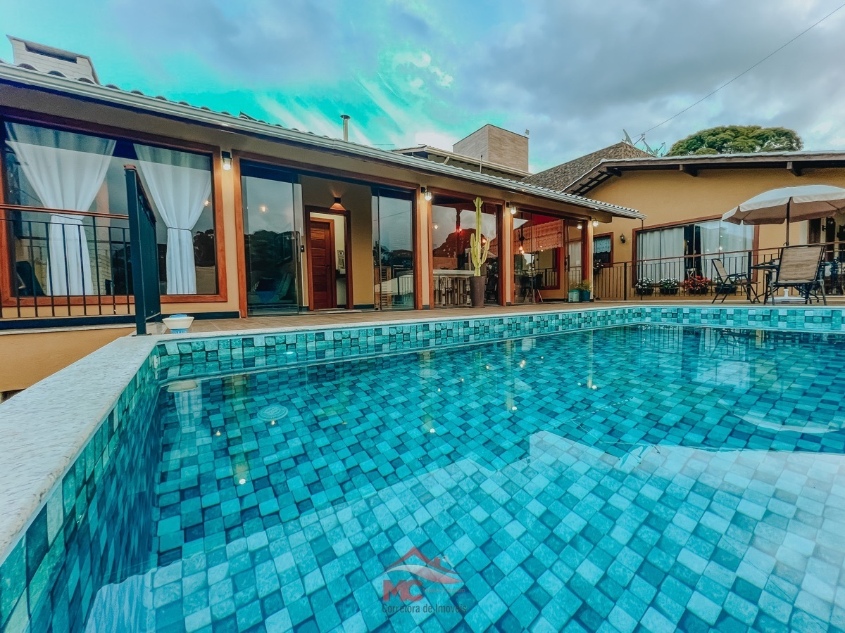 Com um terreno de 745m² e uma área construída de aproximadamente 450m², esta lindíssima casa dispõe de 03 quartos, sendo uma suíte, 2 banheiros sociais, sala de estar integrada com sala de jantar e uma cozinha com o clima das montanhas. Além disso, possui uma varanda super aconchegante e acabamento impecável.